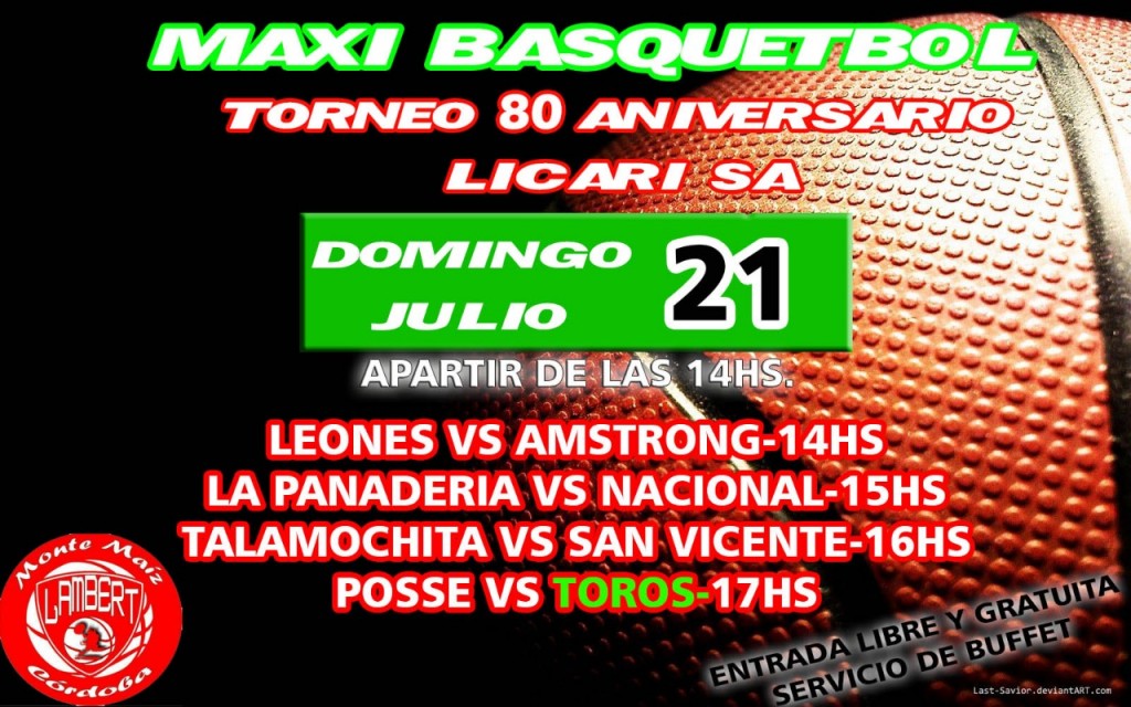 El Gimnasio del Club Atlético Lambert este domingo 21 de Julio Recibe al Maxi Básquet Regional donde está participando Sportivo el Toro; el Papi Básquet del Rojo. Se va a disputar a partir de las 14 hs. la 5° fecha de la fase clasificatoria.