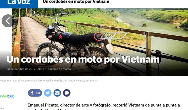 Emanuel Picatto es un joven de Monte Maíz de 29 años de edad. Es Diseñador Gráfico y Fotógrafo y entre los meses de Febrero y Mayo del corriente año recorrió el Sudeste Asiático en una Moto de mediana cilindrada que bautizó “Negra Marta” en homenaje a sus abuelas. Una experiencia fascinante que llegó hasta el Diario La Voz. Emanuel es hijo de Rosana Lapiana y Rody Picatto y actualmente está radicado en la ciudad de Córdoba por motivos laborales. A continuación transcribimos el Artículo de La Voz: