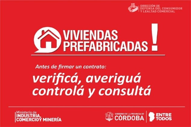 La Dirección de Defensa del Consumidor y Lealtad Comercial, constató en los últimos días la existencia de 15 nuevas empresas dedicadas a la comercialización e instalación de viviendas prefabricadas en la provincia de Córdoba.