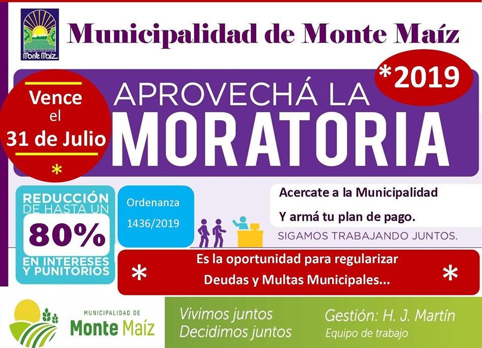 MORATORIA MUNICIPAL: HOY ÚLTIMO DÍA HASTA LAS 19 HS.