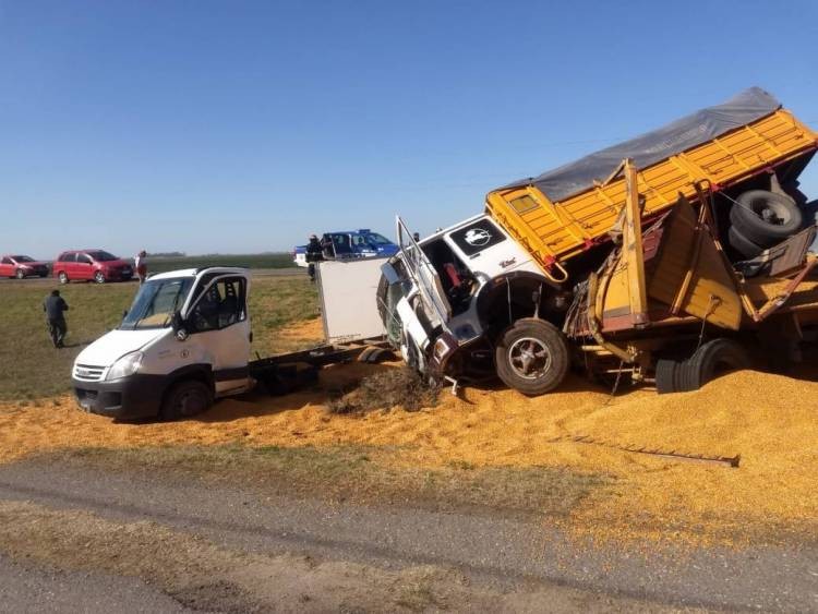 Según fuentes oficiales, el furgón se aprestaba a “bajar” hacia Santa María y el camión lo impactó desde atrás; esto provocó el desplazamiento de la caja del rodado menor y el derrame del cereal que transportaba el camión.