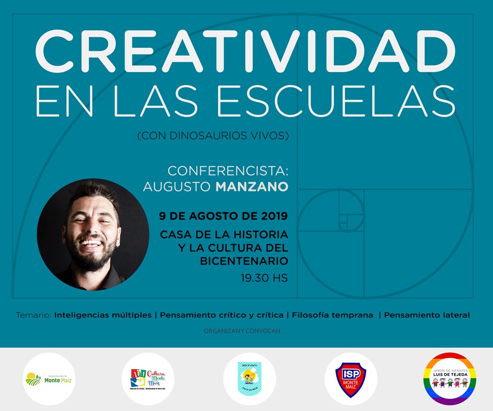 Mañana viernes, a las 19:30 hs. tendrá lugar la charla “Creatividad en las Escuelas” (Con Dinosaurios Vivos) en la Casa de la Cultura y de la Historia del Bicentenario. La misma estará a cargo del Prof. Augusto Manzano de la ciudad de Córdoba.
