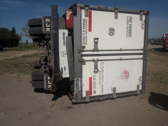 En el lugar, un camión, Marca Mercedes Benz Sprinter, Dominio LYD 714, conducido por Santiago Philips (21), del  mencionado establecimiento quedó volcado en el ingreso tras ser impactado desde atrás por una camioneta Chevrolet S10, Dominio JXY 454 de color blanco,conducida por Juan Ramón Andrada (26), domiciliado en zona rural de Chañar Ladeado..