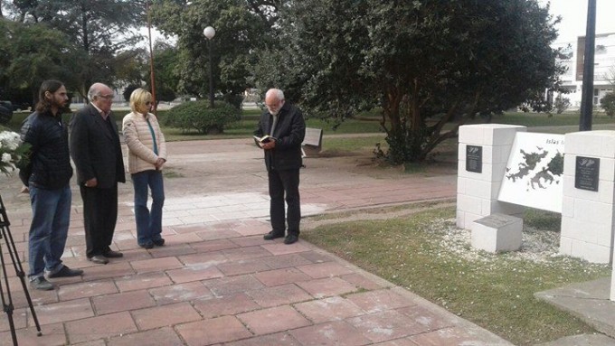 El Intendente Cacho Martín, junto a autoridades municipales rindieron homenaje a los caídos durante y después de la guerra con una ofrenda floral en el Monumento a Malvinas de la plaza inaugurado el 2 de Abril del corriente año. En el solemne acto acompañaron al Intendente el Director de Cultura, Lic. Germán Bonetto y la Presidente del Honorable Concejo Deliberante, Sra. Mary Vasallo. El Cura Párroco Roberto Ferrari elevó una oración por el descanso en paz de los héroes de Malvinas.