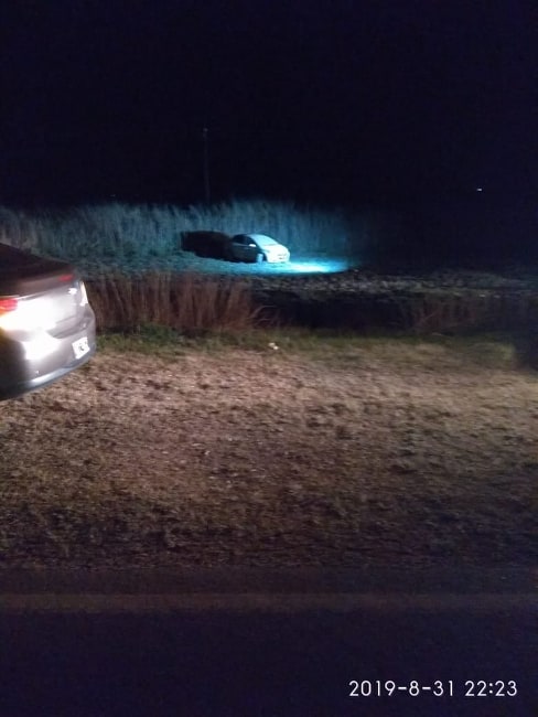 El conductor del auto manifestó que no presentaba ningún tipo de lesión ni dolor alguno. Contó además que mientras circulaba de Oeste a Este por la mencionada arteria perdió el control del vehículo y despistó hacia el lateral norte de la ruta. El Rodado sufrió daños en el tren delantero sin haberse provocado el vuelco.