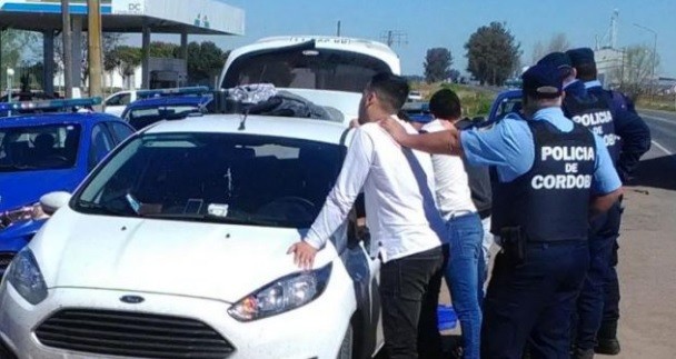 Los jóvenes, dos de 26 y uno de 31 años oriundos de Córdoba, fueron interceptados por la policía alrededor de las 16:45 horas a la altura de la localidad de La Laguna.