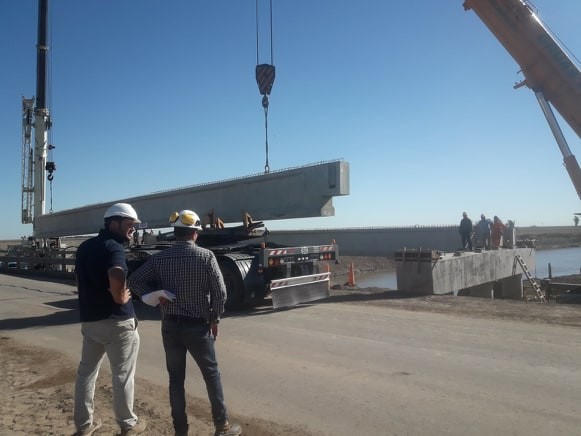 Colocaron las vigas en el puente nuevo de ruta 3