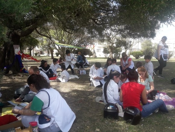 Los alumnos de la escuela Luis de Tejeda, junto con los docentes, trasladaron material bibliográfico de lectura de distinto tipo para aportar y disfrutar de una jornada nacional de lectura.