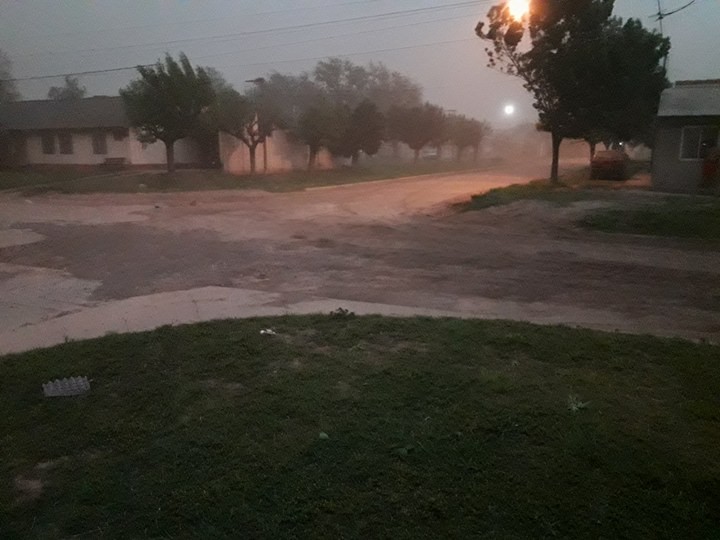 El parte indica que "sobre el área se desarrollan lluvias y tormentas de variada intensidad, algunas localmente fuertes o severas acompañadas por abundante caída de agua en cortos períodos, importante actividad eléctrica, muy intensas ráfagas y caída de granizo".