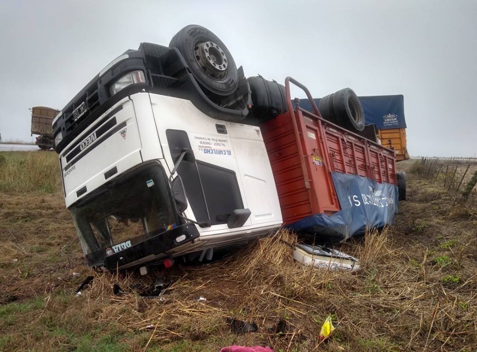 En horas de la tarde de ayer, 16:00 hs. aproximadamente, se produjo un vuelco en solitario de un camión de la Firma “El Cartucho” de la localidad de Laborde.