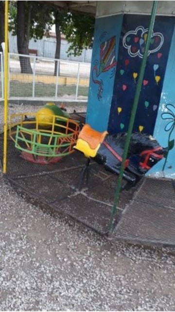 Indignado por la situación que vivió mientras llevó a su hija a pasar un momento de recreación se comunicó con nosotros para mostrarnos a través de fotos los daños que ha sufrido la calesita sin tener ningún tipo de arreglo ni mantenimiento.