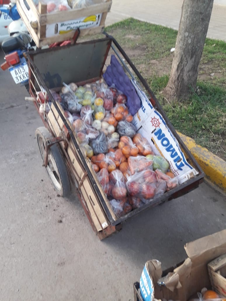 Las frutas y verduras eran trasladadas en un carrito por los vendedores y se desplazaron por distintos lugares de nuestra localidad. Al propietario del transporte “El Papero” se le solicitó que hiciera el Seguro para que pueda continuar viaje con su vehículo.