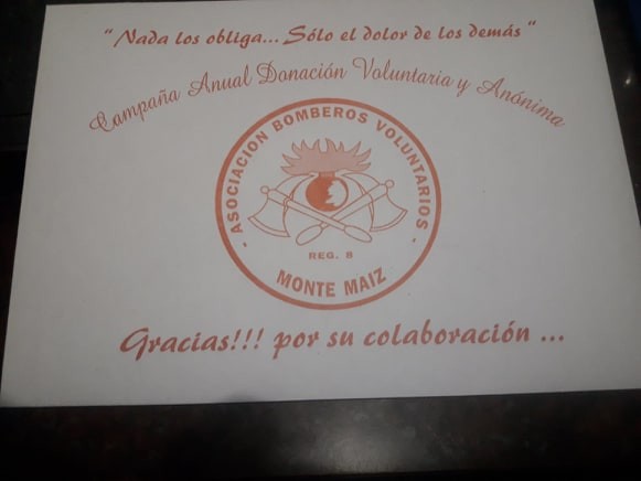 La Asociación Bomberos Voluntarios de Monte Maíz comunica a la población que la recolección de sobres por la 38° Campaña de donación anual, voluntaria y anónima arrojó los siguientes resultados: