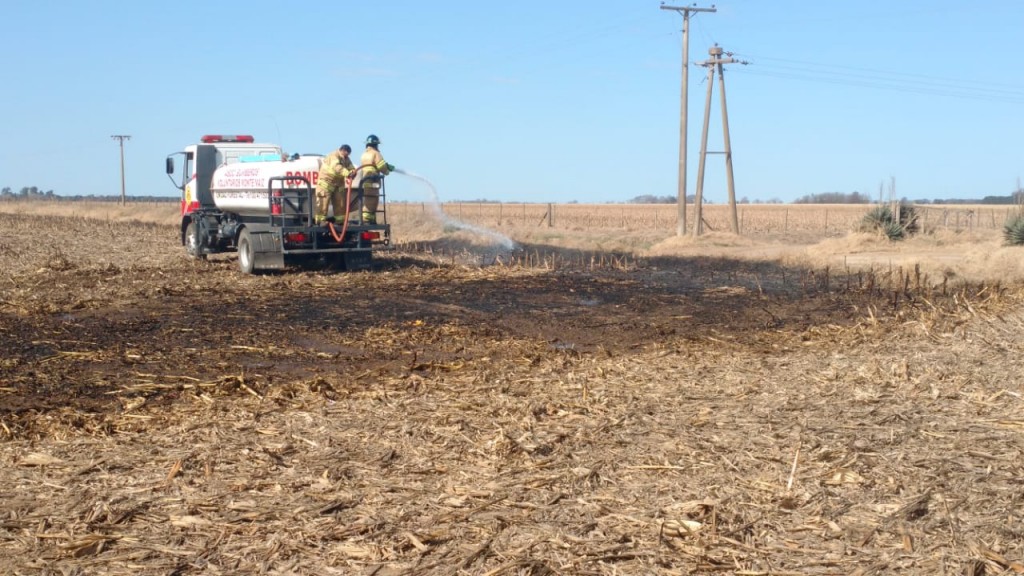 A las 13:00 hs. de este jueves, Bomberos Voluntarios de Monte Maíz fueron convocados a la zona rural por un incendio de rastrojos en un establecimiento llamado “San José” en el Saladillo. A unos 27 kms. hacia el cardinal Noroeste de Monte Maíz.