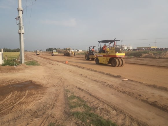 Luego de la lluvia de la semana pasada se reactivó la obra de pavimentación del primer camino rural en la República Argentina. Una obra histórica que le tocó a Monte Maíz y, más precisamente, a la Cooperativa Agrícola.