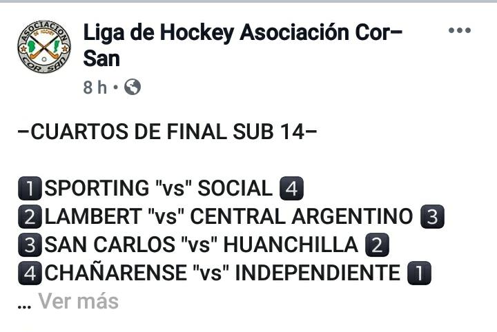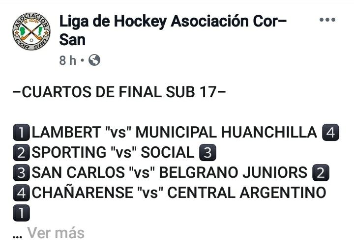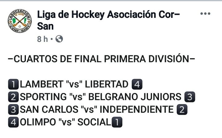 El próximo domingo 10 de noviembre se juegan los Cuartos de Final de la Liga de Hockey COR SAN (Córdoba Santa Fe).
