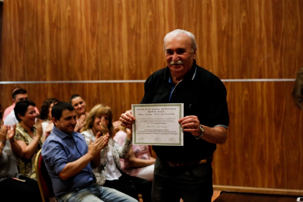 El Intendente electo, Dr. Luis María Trotte, se mostró muy contento con la entrega de diplomas. Estuvo acompañado de su esposa y de su Bloque de Concejales que también asumirán sus funciones en el Cuerpo Deliberativo local.