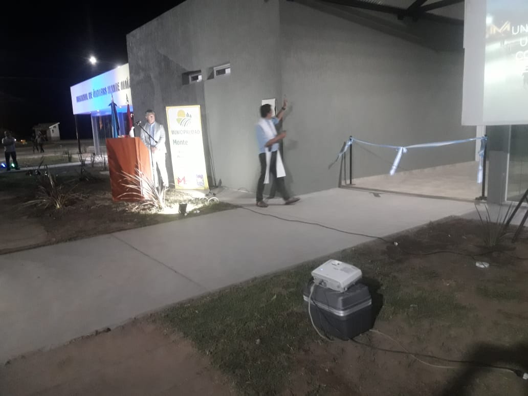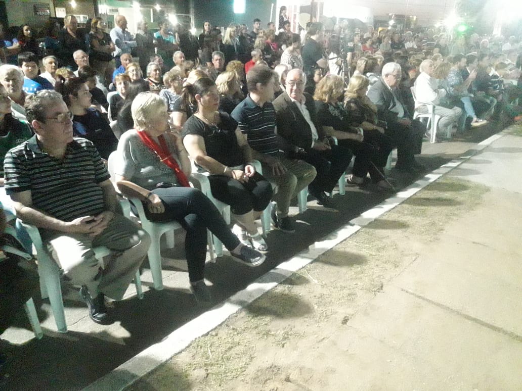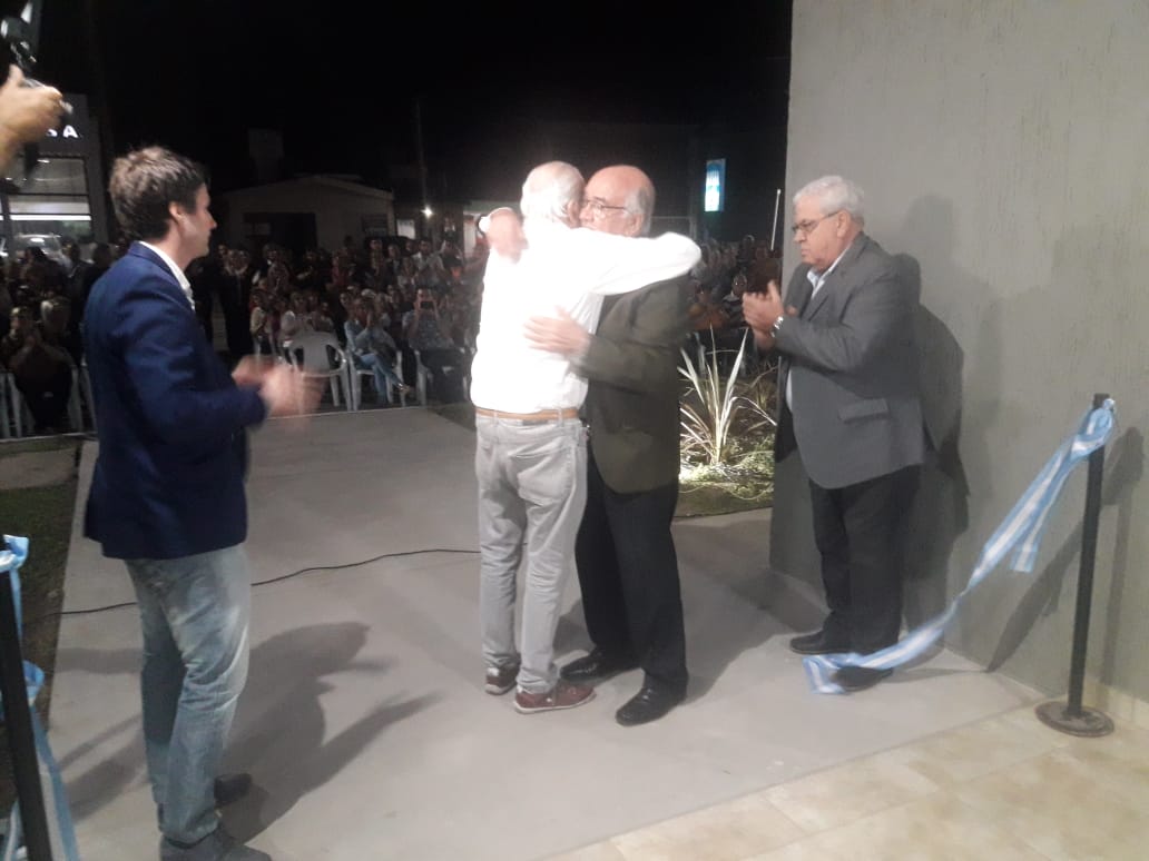 El Padre Martín Simonassi fue el encargado de dar la bendición del nuevo edificio y el único orador de la noche fue el Intendente Cacho Martín. Se difundió un video mostrando el desarrollo de los trabajos y luego se procedió al corte de cinta del cual participaron Cacho Martín y Luis Trotte –Intendentes; actual y electo- quienes luego se confundieron en un sentido abrazo. Previo a ello se hizo el descubrimiento de dos placas recordatorias de la obra con la fecha y Gestión de la misma y otro en reconocimiento a quienes construyeron el nuevo edificio.