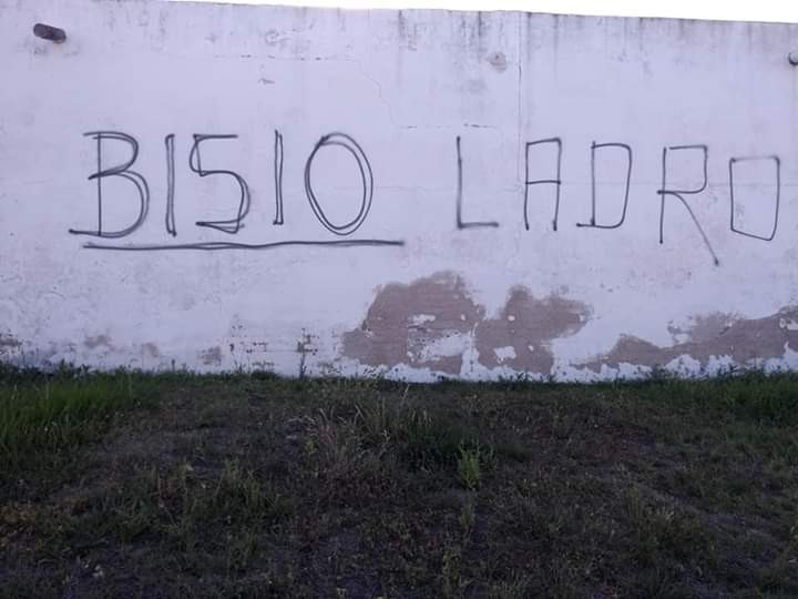 Se trató nada menos que del paredón de un lugar sagrado como el cementerio, donde con pintura expresaron agresión a la firma Bissio, empresa que entró en cesación de pagos hace dos años.