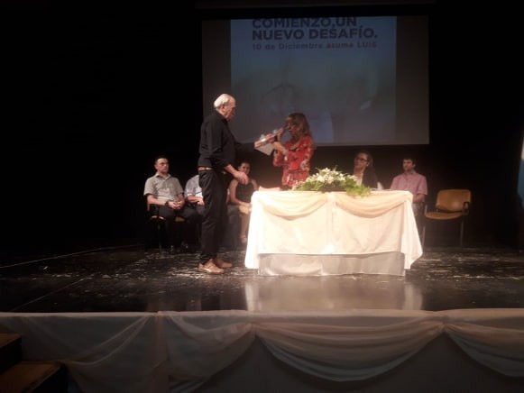 Previo a ello, tomó la palabra el Intendente saliente, Cacho Martín, quien resaltó su beneplácito con que el Intendente electo haya sido nuevamente el Dr. Luis Trotte. Vale recordar que él se presentó por la reelección obteniendo el tercer lugar en los comicios, ya que fue superado por Luis Trotte y por el Ing. Jorge Cervigni. El cuarto lugar lo ocupó Bartolo Mottura.
