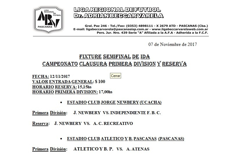 FIXTURE SEMIFINALES DE LA BÉCCAR VARELA