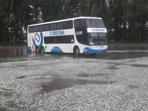 Un colectivo de la empresa Córdoba Coata, el Interno N° 4378, se empantanó en la madrugada del lunes cuando hizo marcha atrás para salir de la estación terminal de ómnibus de Monte Maíz.