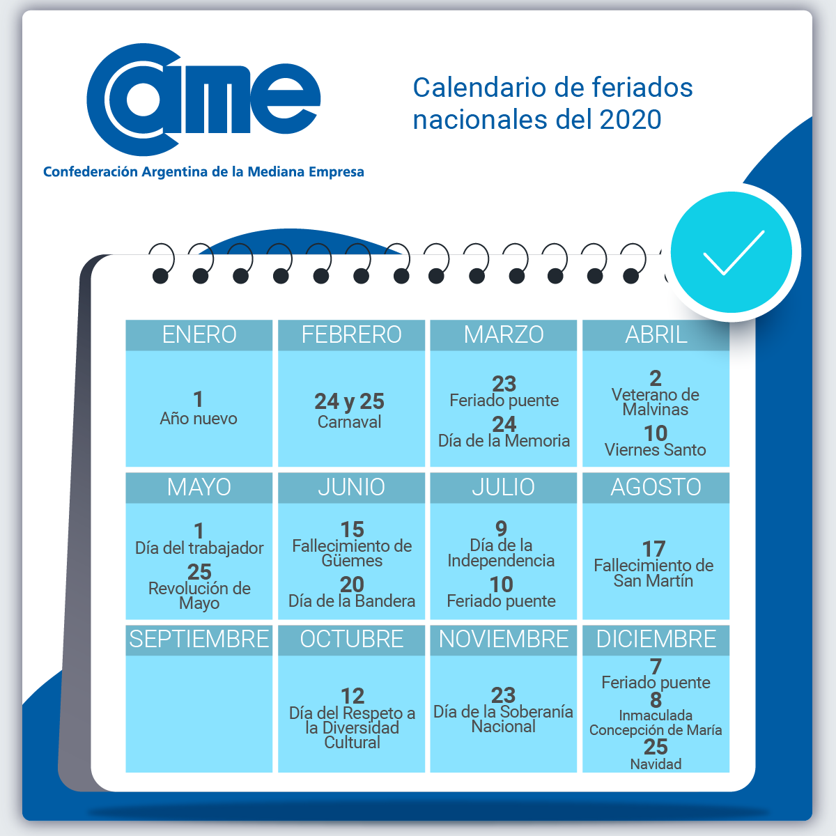 CALENDARIO DE FERIADOS NACIONALES 2020