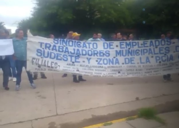 El Sindicato de Trabajadores Municipales del Sudeste y Zona realizó una Asamblea frente al Hospital Municipal y luego se trasladaron al Palacio Municipal reclamando la reincorporación de dos personas que trabajan en el ámbito de la salud a las cual no se les renovaron los contratos, un personal de calle y el pago de sueldo en los primeros días de cada mes.