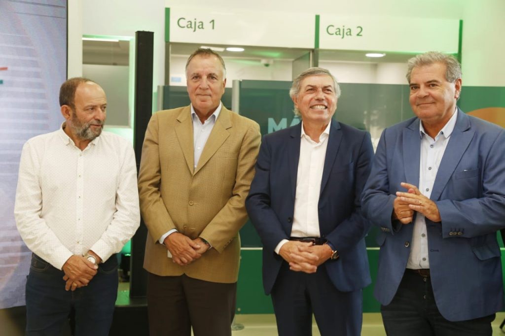 El presidente del Banco de Córdoba, Daniel Tillard, junto al ministro de Desarrollo Social, Juan Carlos Massei y el ministro de Agricultura y Ganadería de la provincia, Sergio Busso, inauguraron la sucursal en la ciudad de Monte Buey bajo el nuevo modelo Bancor Más, que promueve la digitalización de los servicios bancarios y concentra una nueva propuesta de atención integral en el sudeste de la provincia de Córdoba.