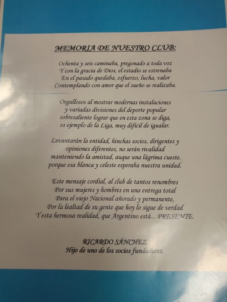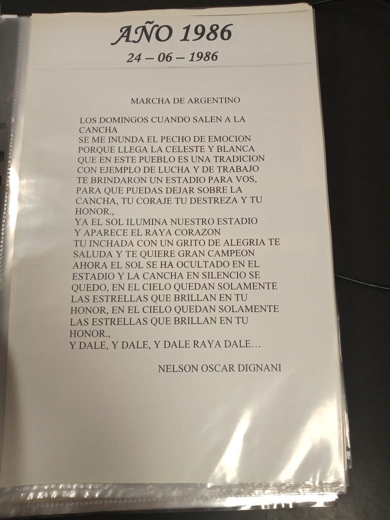 El cantante Rafaelino mantiene una relación de amistad con Claudio Nebbia, actual Presidente de la Mutual de Asociados del Club Deportivo Argentino, quien le pidió que grabara su versión musical de dicho Himno. Colombo accedió al pedido y grabó la canción cuya letra y música fue compuesta por el recordado cantante local Nelson “Calculín” Dignani el 24 de junio de 1986.