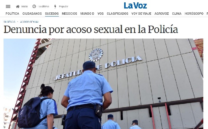 La ex Cabo Mariela Neyra de la Policía de la provincia de Córdoba denunció por acoso sexual al Comisario Inspector Mauricio Mielgo quien se encuentra a cargo de la Unidad Regional Departamental Marcos Juárez.