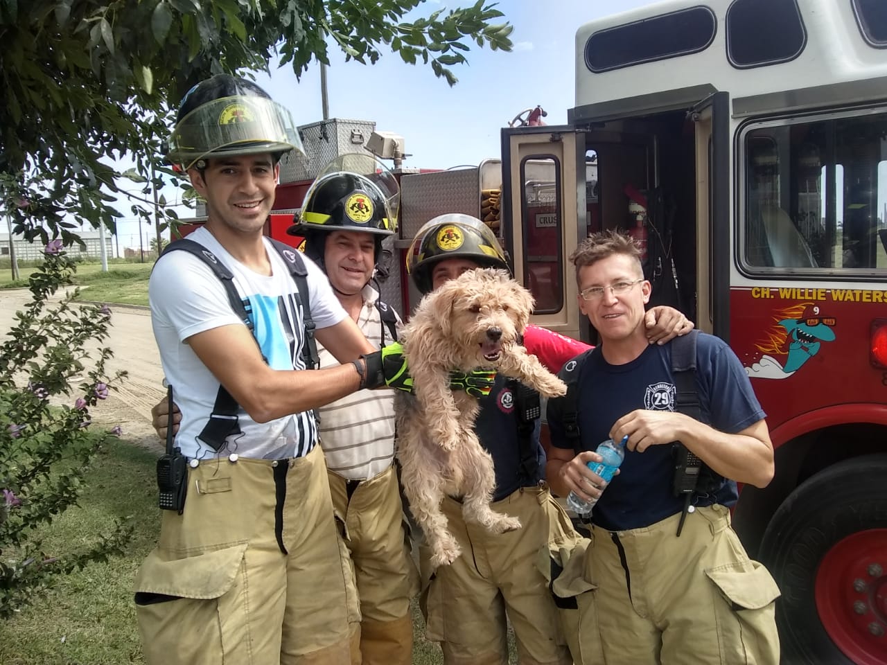 En la tarde de este domingo, a las 15:15 hs. Bomberos Voluntarios de Monte Maíz fueron convocados a calle la Pampa al 1448 de B° Gobato para socorrer a un perro de tamaño chico que quedó trabado en la reja del frente de una vivienda.