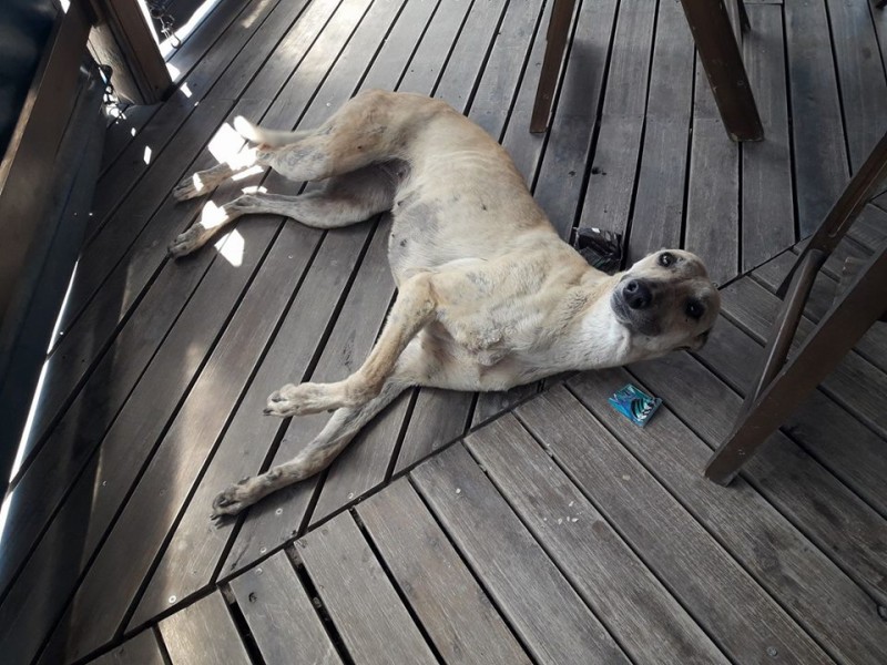 En esta ocasión intervinieron en auxilio de esta perra galga de color marrón clarito luego de ser avistada en tan mal estado. Ellos ya venían trabajando en el cuidado del animal aunque no habían conseguido un lugar fijo donde dejarla para llevar adelante el tratamiento correspondiente. El lunes feriado y bajo las indicaciones del veterinario Marcelo Pellegrini, Mirian Urseller se acercó a ver la perra que ya habían atendido hace algunos días y desestimaron que el animal tenga sarna. Se trata de heridas provocadas por garrapatas. Se le sacó gran cantidad de estos parásitos, estaban amontonados en un sector de su cuerpo y le generaron esas lesiones. Mientras esperan la intervención del Médico Veterinario fue atendida y alimentada. Esperan contar con la solidaridad de un alma caritativa que adopte a esta perra para que pueda continuar con un tratamiento y una vida digna.
