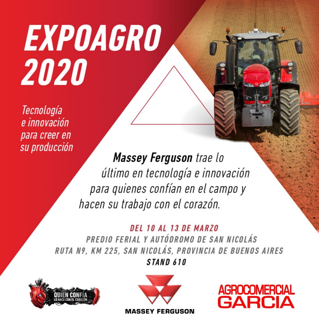 Del 10 al 13 de marzo, desde Agrocomercial García los invitamos al stand oficial de Massey Ferguson en Expoagro 2020.