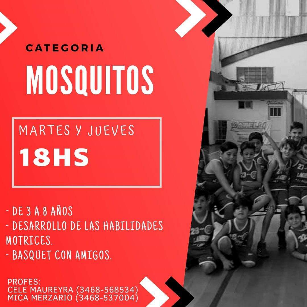 - Cat. Mosquitos (de 3 a 8 años) Martes y Jueves a las 18 hs.