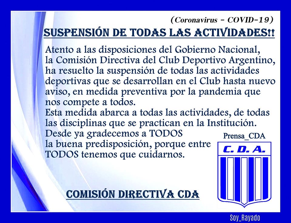 LOS CLUBES SUSPENDIERON ACTIVIDADES DEPORTIVAS