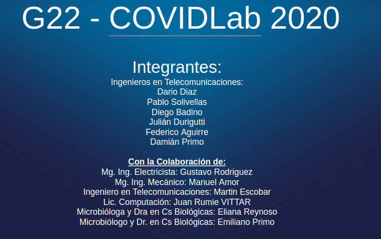 Cuentan con la colaboración de Mg. Ing. Electricista: Gustavo Rodríguez. Mg. Ing. Mecánico: Manuel Amor. Ing. en Telecomunicaciones: Martín Escobar. Lic. en Computación: Juan Rumie Vittar. Microbióloga y Dra. en Cs. Biológicas: Eliana Reynoso y Microbiólogo y Dr. En Cs. Biológicas: Emiliano Primo.