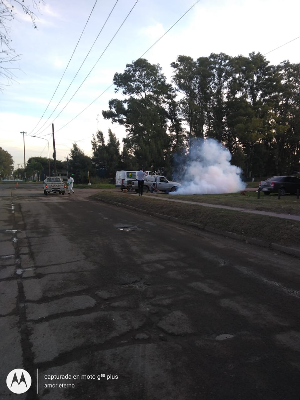 El sábado a la tarde comenzó la fumigación contra los mosquitos barrio por barrio. Tal proceso se está llevando a cabo con termonebulizadora y con técnica especial de sobresaturación para poder disminuir exponencialmente la población de mosquitos.