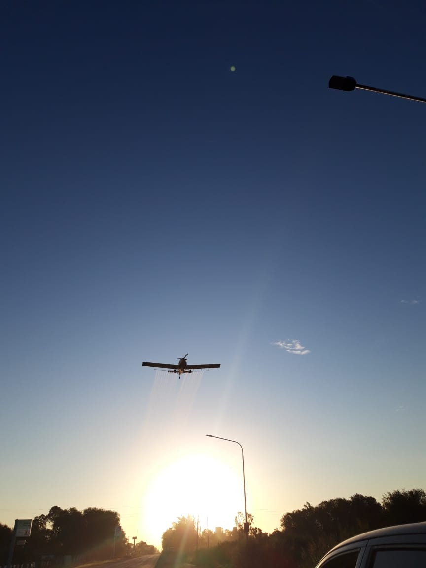 El jueves por la tarde se realizó una pulverización aérea en Monte Maíz para combatir la proliferación de mosquitos.