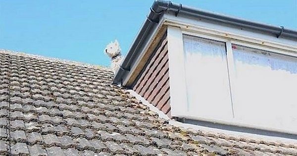 PERRO ATRAPADO EN UN TECHO