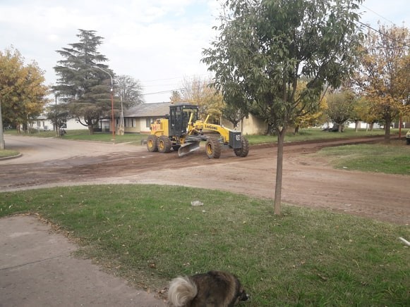 Esta vez se pasó la motoniveladora en la calle 25 de Mayo, desde Chubut hasta La Pampa. Forma parte de una planificación de la Secretaría de Obras Públicas que consiste en realizar tareas de  mantenimiento  mientras se consiguen fondos para comprar material para el mejorado.