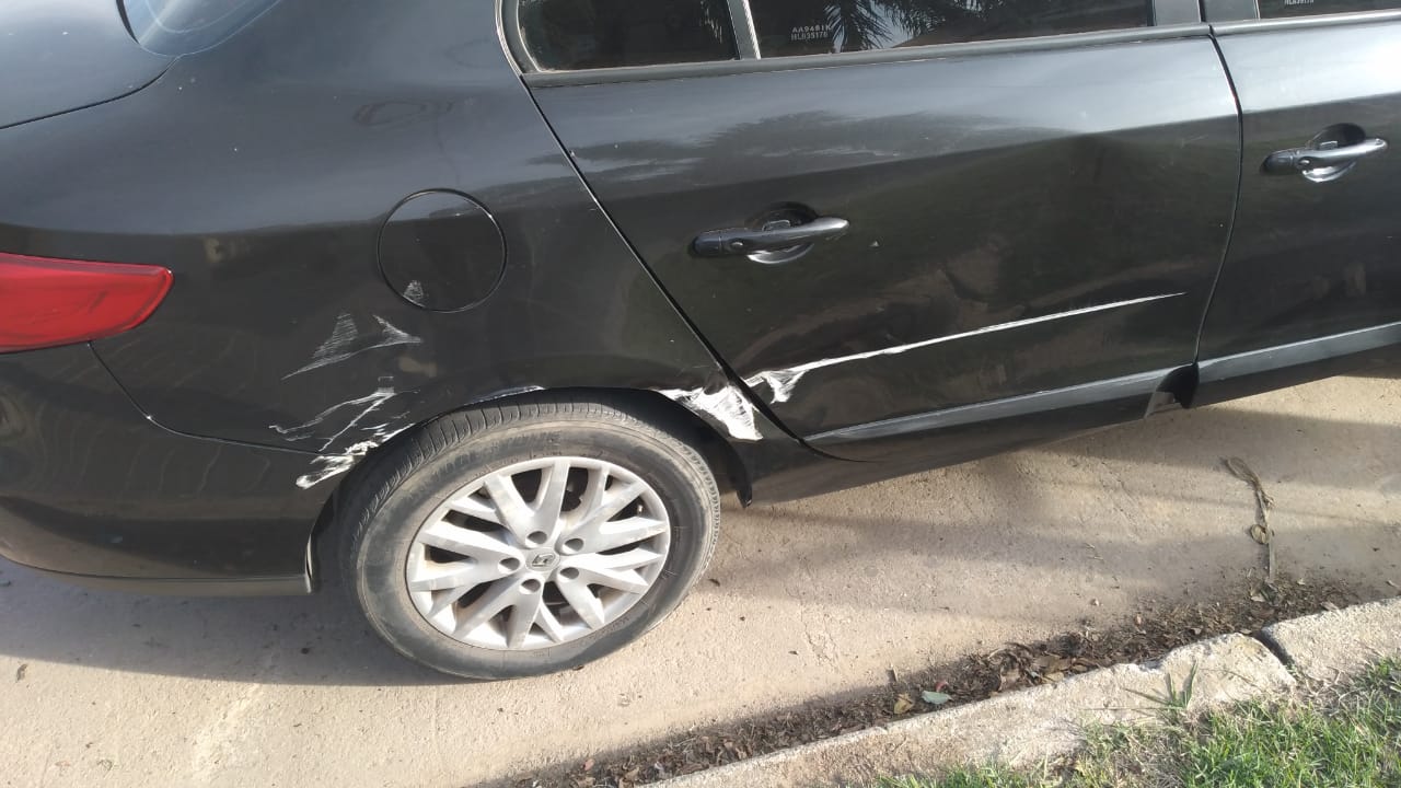 Una camioneta Ford F100 color blanco perteneciente al Sr. Federico Wyss y que estaba correctamente estacionada en calle Buenos Aires al 1600 vereda sur, fue rozada por un automóvil color negro conducido por Elizabeth Steinacher que circulaba en la misma dirección de como estaba estacionada la Ford.