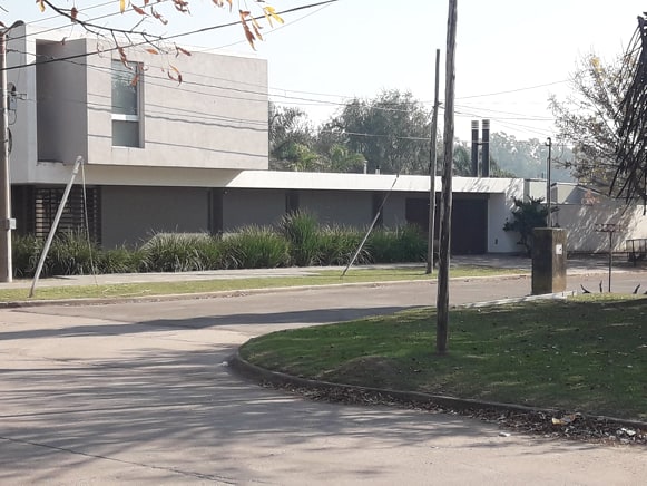 En la mañana de este domingo, el chasis de un camión enganchó el delimitador de altura de calle La Rioja y San Juan derribando el poste de la esquina este.