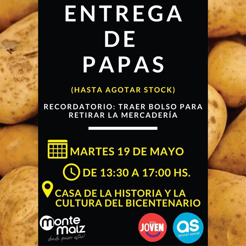 En el día de hoy, la Municipalidad de Monte maíz estará entregando papas a las familias de escasos recursos que así lo requieran.