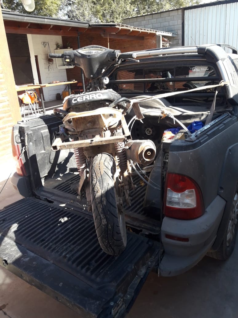 Por último fue secuestrada una Motocicleta Marca Yamaha de 110 c.c. a un conductor de Isla Verde quien dijo ser de apellido Castellano aunque no se pudo verificar fehacientemente su identidad porque no portaba su DNI. Tampoco tenía documentación del vehículo.