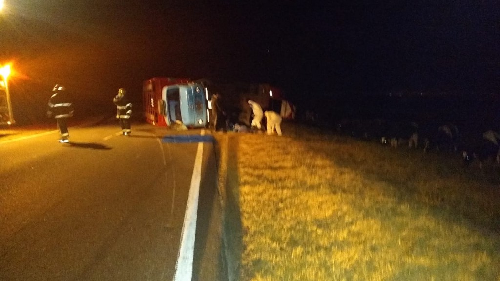 Tras el siniestro, el camión quedó apoyado en su lado derecho sobre la carpeta asfáltica. No se constató la participación de otro vehículo ni tampoco el deceso de ninguno de los animales.