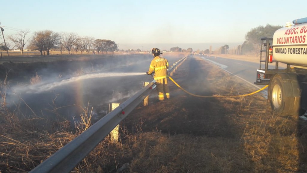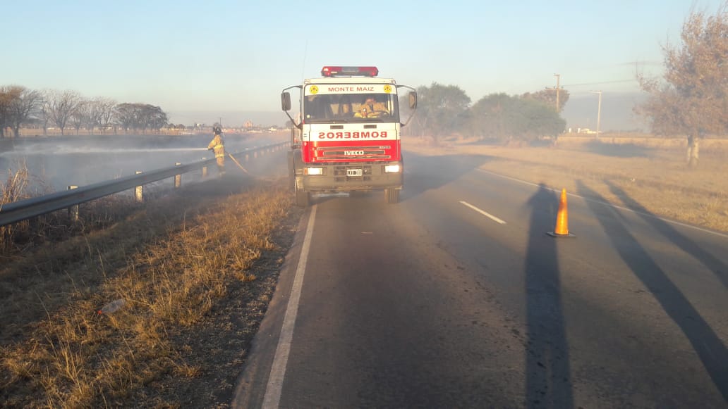A las 17:30 hs. de este lunes, Bomberos Voluntarios de Monte Maíz fueron convocados a ruta provincial N°11, a 1,5 kms. hacia el oeste del pueblo para combatir un incendio de pastizales en la banquina.