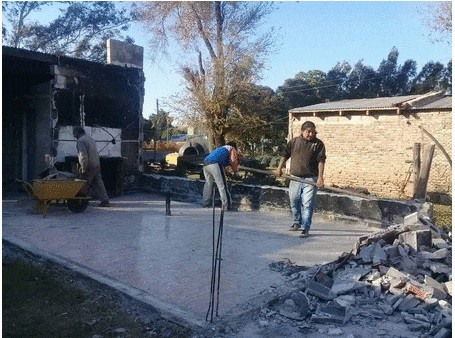 La propietaria, Dora Arias, domiciliada actualmente en nuestra localidad, hizo una rifa para poder comprar cerámicos para el piso y un tanque de agua. Se demolieron las paredes para volver a levantarlas sobre los mismos cimientos. Trabajan en el lugar y en la reconstrucción empleados de la Comuna de Colonia Barge.