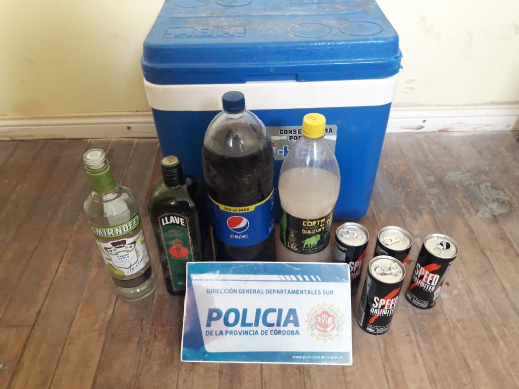 En el procedimiento se logró el secuestro de una conservadora que contenía bebidas alcohólicas. Había Smirnoff (vodka), ginebra y bebidas energizantes (Speed).