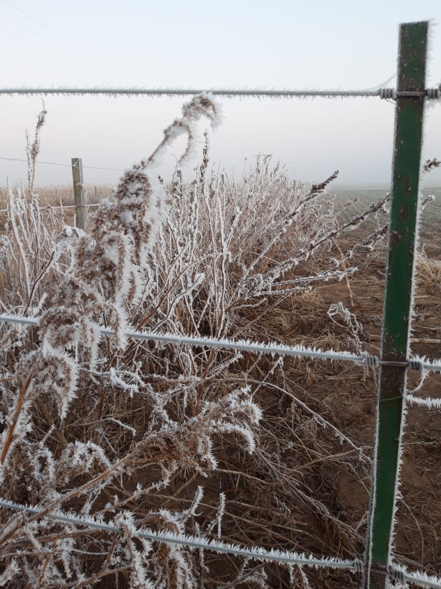 Con temperaturas bajo 0 y con una fuerte helada amaneció gran parte del sudeste cordobés. En Monte Maíz la helada fue visible hasta casi el mediodía en los lugares en donde no daba el sol.